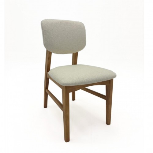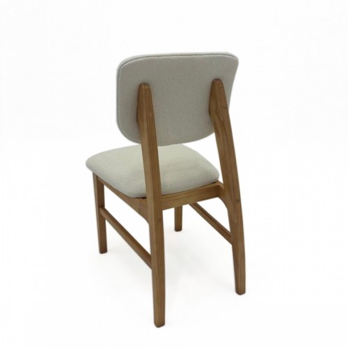 Cadeira com encosto e assento estofados, em multilaminado curvo